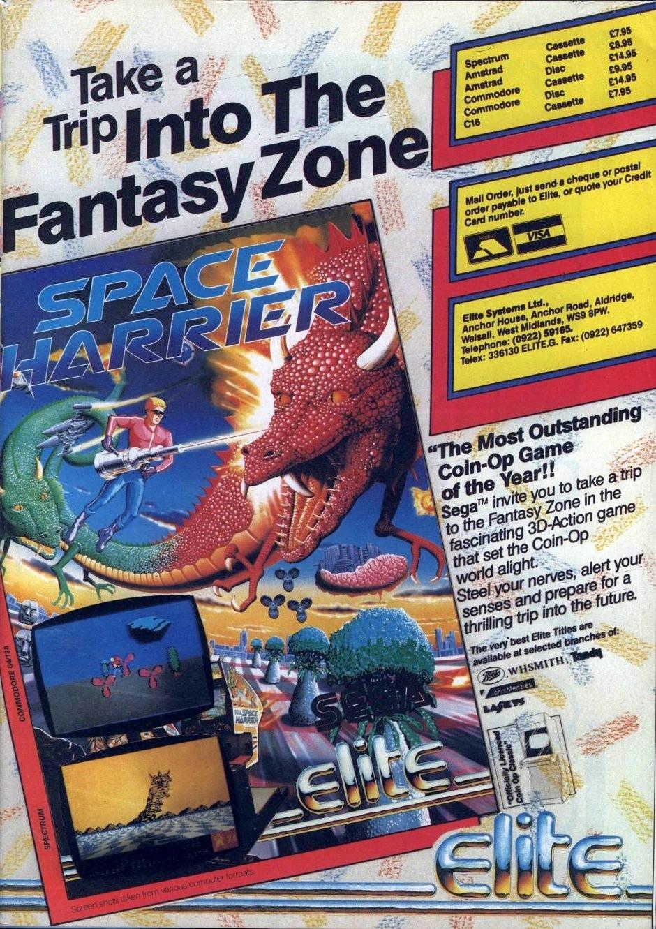 Space Harrier de Sega, adapté de la célèbre borne d'arcade et sorti sur Amstrad CPC 464 en octobre 1985,