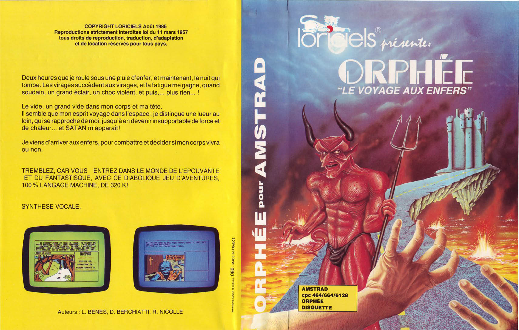 1985 vit également sortir sur Amstrad CPC 464 Orphée voyages aux enfers,